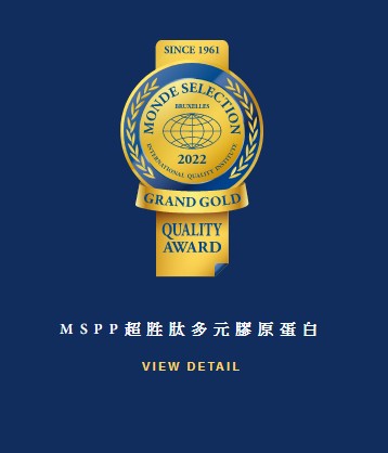 我司代理的“MSPP超胜肽多元膠原蛋白”產品獲得2022年特別金賞,並入圍膳食營養與健康產品類別評委會大獎的 5 位候選產品名單,恭喜!!