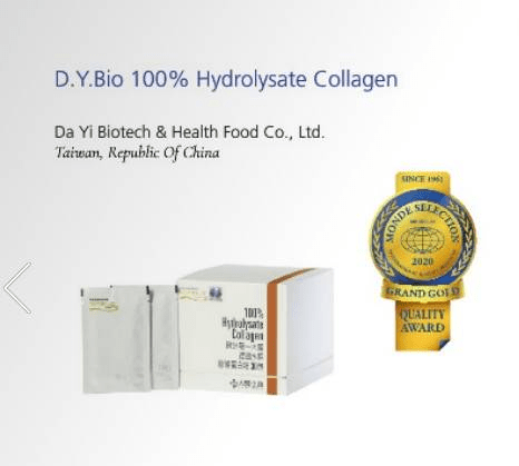 - 特別恭賀在2020年Monde Selection評鑑中大醫生技的100%水解膠原蛋白粉產品獲得保健品類別的特別金獎,感恩~
