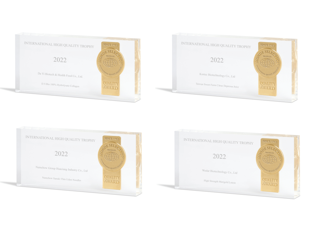 2022年Monde Selection評鑑獲獎的獎牌和證書已陸續完成派送